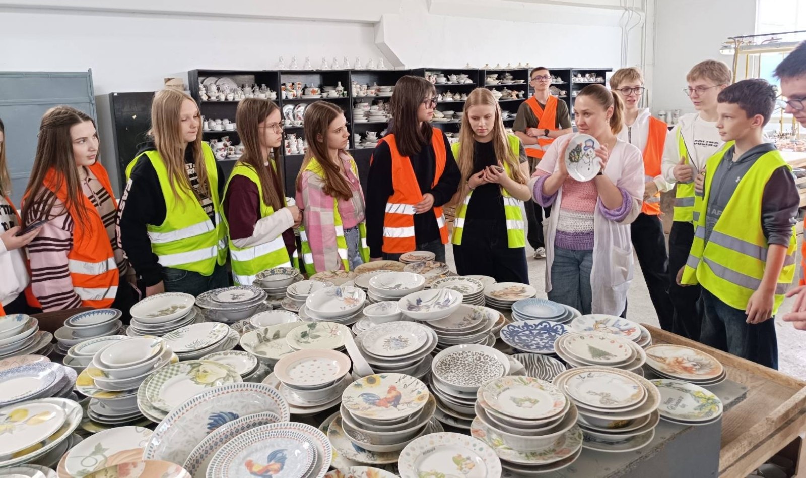 Ребята увидели полный цикл рождения «белого золота»: из обычного песка и глины на глазах возникают изящные чашки ✨. А потом их вручную расписывают настоящие волшебницы — мастерицы 🎨. Одна такая художница за смену украшает до 25 изделий – это настоящее искусство!