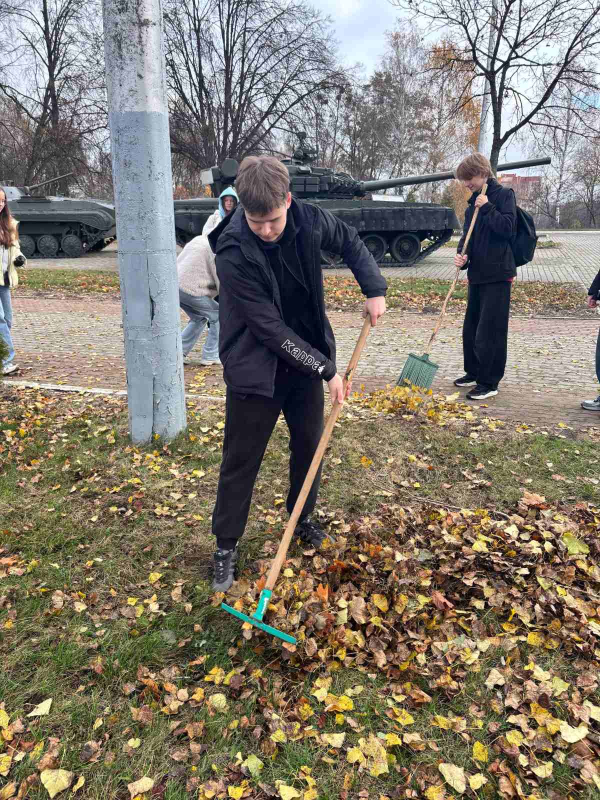 Ребята с большим энтузиазмом взялись за работу: граблями собирали листву, метлами подметали памятные аллеи. Благодаря их слаженным усилиям территория вокруг монумента преобразилась, став еще более ухоженной и торжественной.